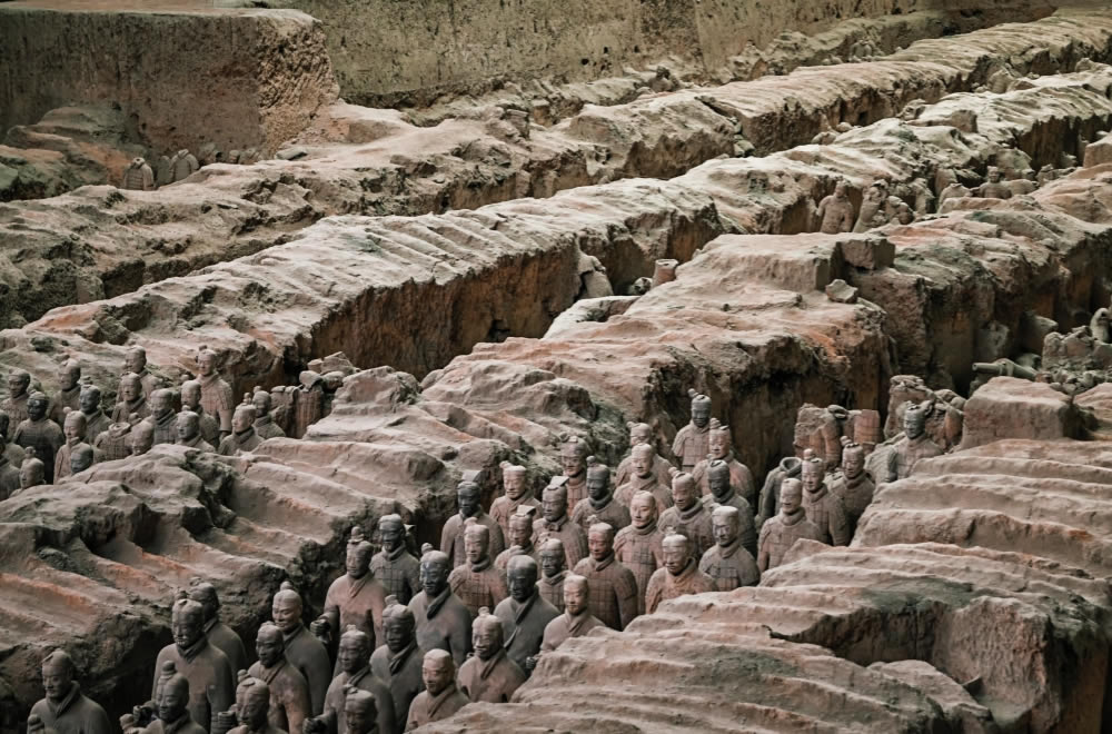 地下に埋められていた推定8000体と言われる実物大の兵士、馬、戦車の陶俑、始皇帝の絶大な権力を象徴する遺産「兵馬俑」☆世界遺産☆、中国初の皇帝「秦始皇帝」の眠る陵墓「秦始皇帝陵」☆世界遺産☆(文官俑も百戯俑も銅馬車も見学!)、市内に戻り、古都西安のシンボルで、玄奘法師が経典を保存するため建てられた「大慈恩寺・大雁塔」☆世界遺産☆、水の流れは音楽の旋律に従って、時に優しく、時に甲高いであり、色とりどりの明かりがそれに映えている視覚の盛宴「大雁塔北広場の音楽噴水ショー」、盛唐時代の風采を再現させる文化・商業歩行街区「大唐不夜城」を観光後、西安古城壁と鐘楼を車窓観光して、厳選した西安市内ホテルへご案内します。