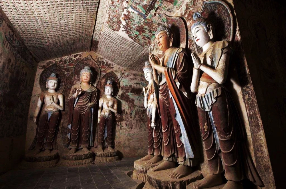 4世紀から約千年間、元の時代に至るまで彫り続けられた大小492の石窟に彩色塑像と壁画が保存されており、仏教美術として世界最大の規模を誇ります。1900年に敦煌文書が発見されたことでも有名となりました。雲崗石窟、龍門洞窟とともに中国三大石窟の一つに数えられます。