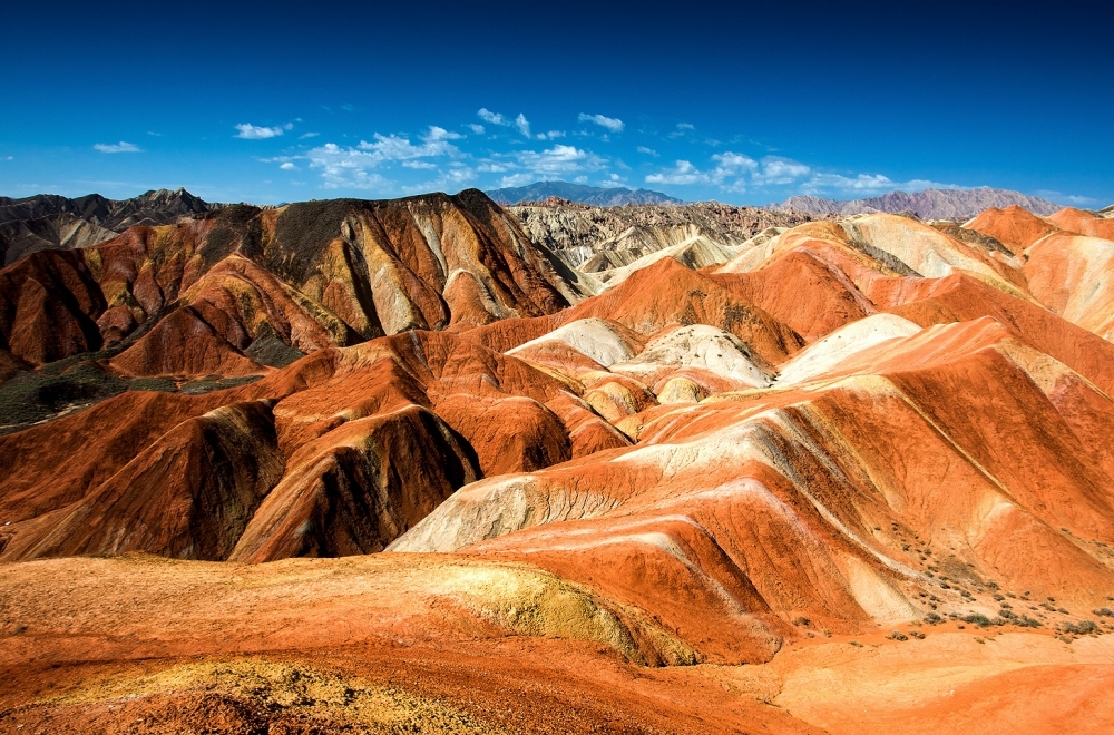 別名「七彩山」、東洋のグランドキャニオンと呼ばれ、赤い堆積岩で形成された美しい縞模様の地層が見られる広大なカルスト地形です。