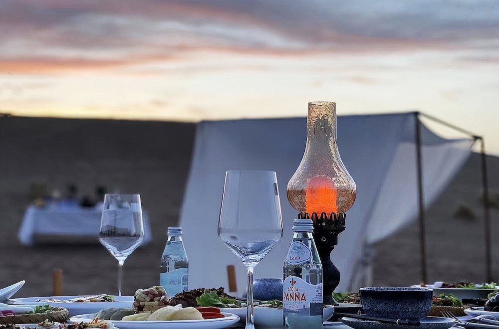 ※四輪駆動車砂漠ドライブ、サンドバギー、砂滑り、砂漠夕日、花火、砂漠ディナーなど砂漠キャンプをお楽しみください。