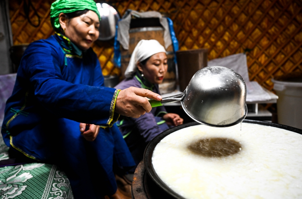 シラムレン草原到着後、草原歓迎式「下馬酒」を体験