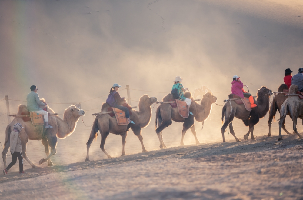 1500 風が吹くと「砂が鳴く」ような音を出すことで知られている「鳴沙山」及び三日月形の湖「月牙泉」を観光。行きは駱駝乗り、帰りは電気カート利用。