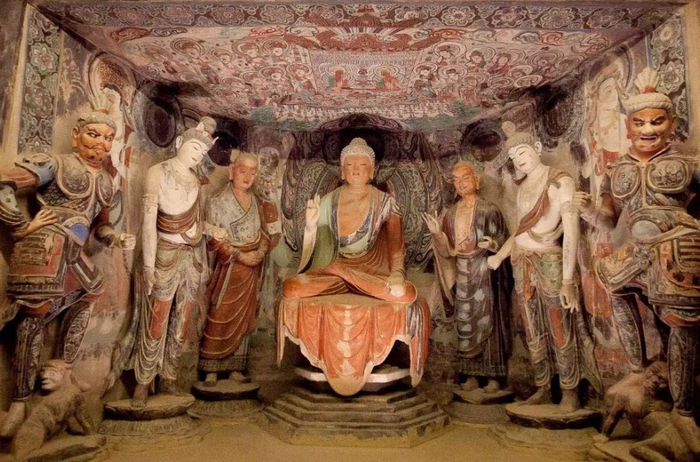 4世紀から約千年間、元の時代に至るまで彫り続けられた大小492の石窟に彩色塑像と壁画が保存されており、仏教美術として世界最大の規模を誇ります。1900年に敦煌文書が発見されたことでも有名となりました。雲崗石窟、龍門洞窟とともに中国三大石窟の一つに数えられます。