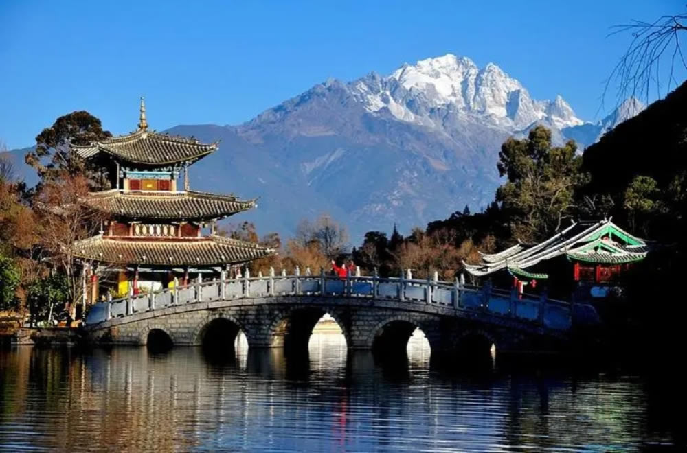 茶馬古道で栄えた町「束河古鎮と茶馬古道博物館」、黒っぽい水の湧く黒龍潭と呼ばれる泉に玉龍雪山の倒影を映している「玉泉公園」、「トンパ文化研究所」「東巴(トンバ)博物館」、氷河をいただく玉龍雪山の麓に広がるナシ族が築いた古い町並み「麗江古城」(四方街など)☆世界遺産☆を訪れた後、古城内の厳選ホテルまでお送りします。