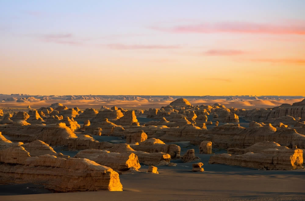 万里の長城の西端に置かれた関所、陽関と共に西域への要衝「玉門関」☆世界遺産☆、前漢時代に対匈奴用に玉門関の西方から疎勒河の南岸に沿って延々と築かれた「漢長城遺跡」、魔訶不思議な奇岩が広がるヤルダン地形のジオパーク「雅丹国家地質公園(ヤルダン魔鬼城)」、敦煌の南西76㎞に位置する古代シルクロードの関所跡、唐代の詩人王維は「西のかた陽関を出ずれば故人無からん」と詠んだ「陽関」と「陽関博物館」を観光後、敦煌市内ホテルへご案内します。