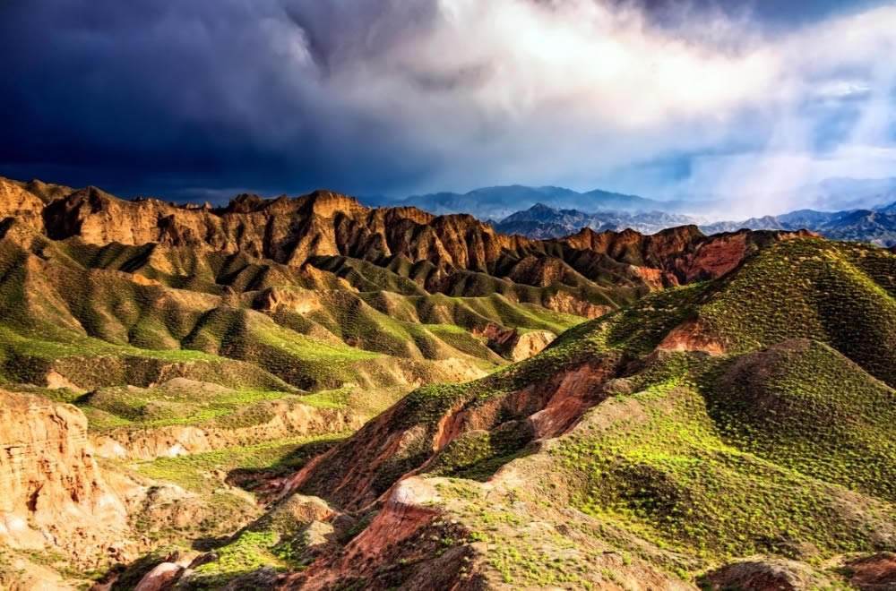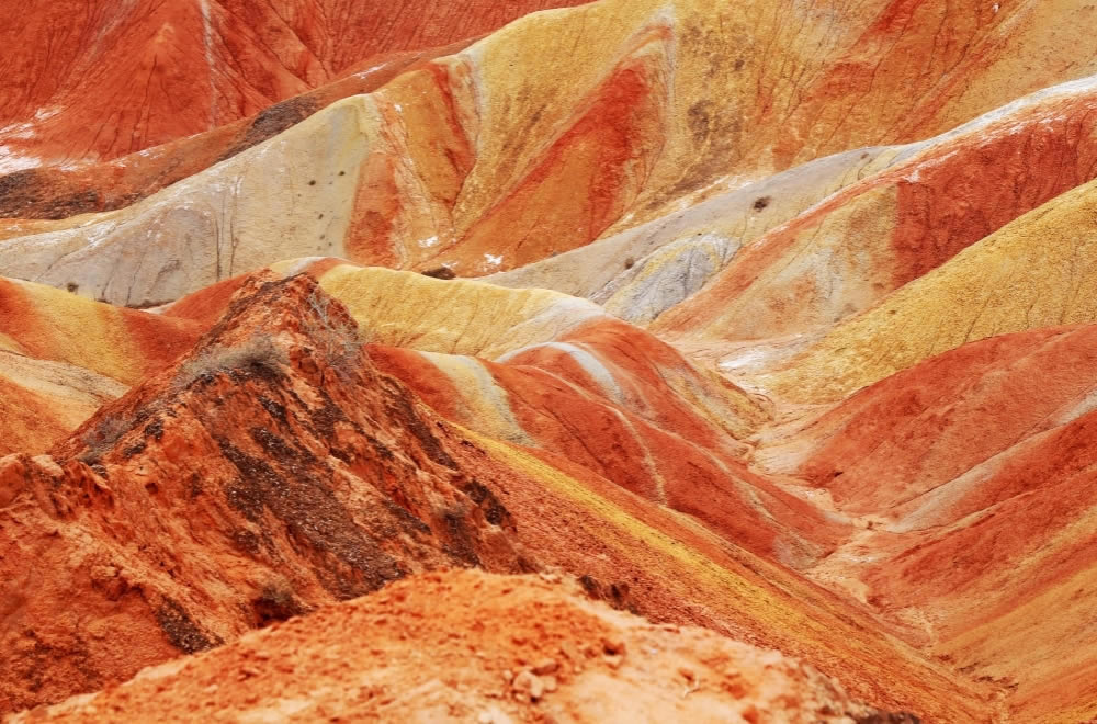 赤い堆積岩で形成された美しい縞模様の地層が見られる広大なカルスト地形で光に照らされ七色に輝くことから七彩山とも呼ばれる「張掖丹霞地貌」、「中国のモニュメントバレー」と称されるほど風光明媚な奇岩の造形美が素晴らしい圧巻な迫力ある「張掖氷溝丹霞」を観光後、厳選した張掖市内ホテルへご案内します。