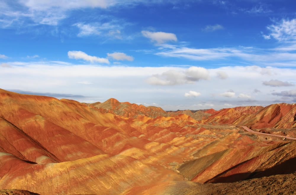 赤い堆積岩で形成された美しい縞模様の地層が見られる広大なカルスト地形で光に照らされ七色に輝くことから七彩山とも呼ばれる「張掖丹霞地貌」、「中国のモニュメントバレー」と称されるほど風光明媚な奇岩の造形美が素晴らしい圧巻な迫力ある「張掖氷溝丹霞」を観光後、厳選した張掖市内ホテルへご案内します。