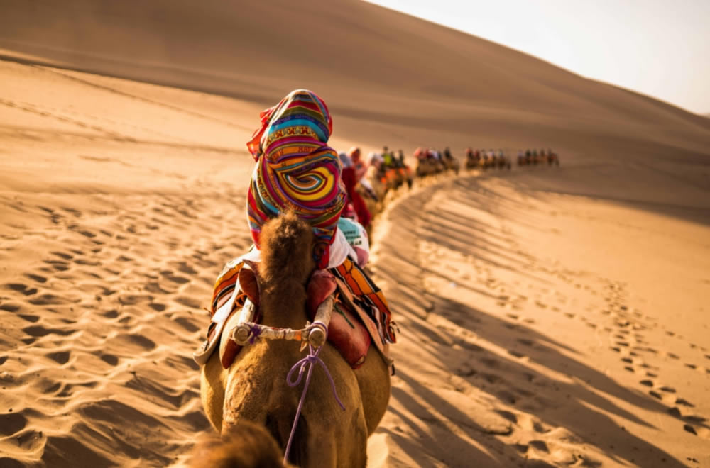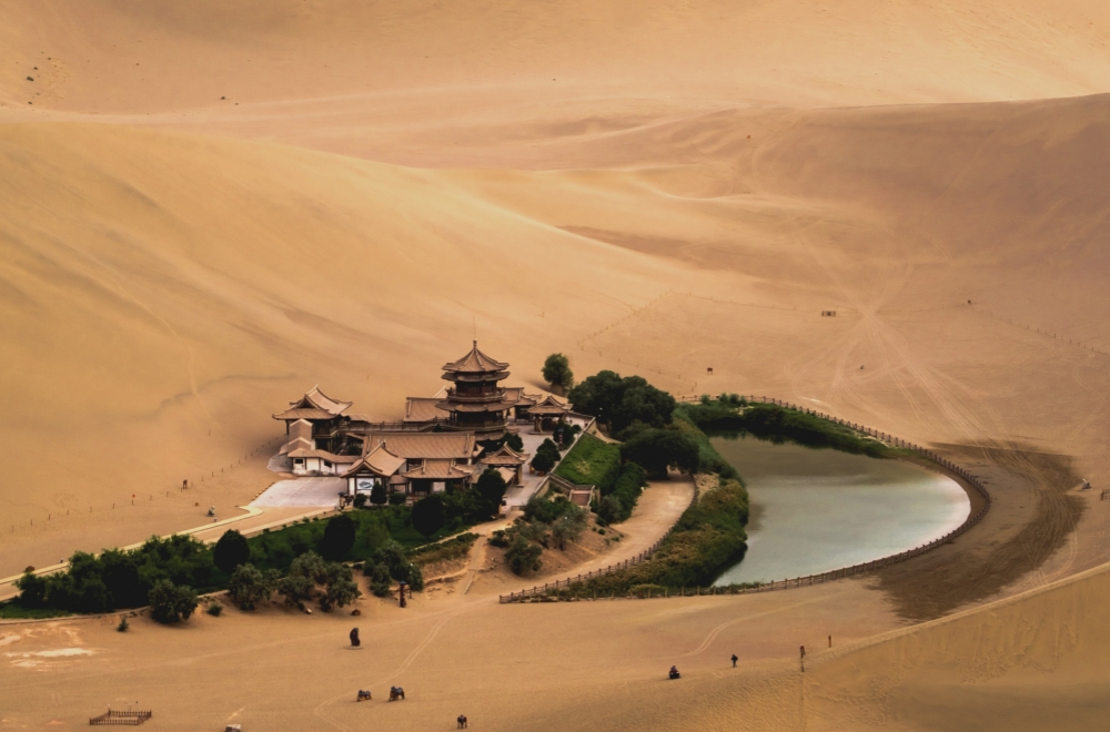 洛陽龍門石窟、大同雲崗石窟と並ぶ中国三大石窟の一つ、砂漠の大画廊、仏教美術の宝庫と言われる石窟群「莫高窟」☆世界遺産☆、莫高窟の第17窟で発見された、いわゆる敦煌文書の一部が公開されている「敦煌博物館」、「史記」に「風が吹くと音を立て、楽を奏でているようだ」と記載されている「神沙山」とも呼ばれていた「鳴沙山」、ラクダ乗りできる三日月(月牙)の形をした泉「月牙泉」、地元の有名美食街、生活の匂いがする屋台「沙州市場」を観光後、敦煌市内ホテルへご案内します。