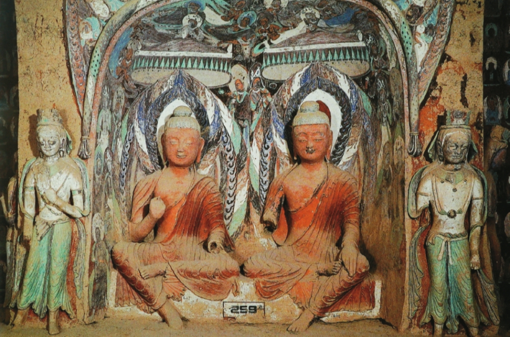 4世紀から約千年間、元の時代に至るまで彫り続けられた大小492の石窟に彩色塑像と壁画が保存されており、仏教美術として世界最大の規模を誇ります。1900年に敦煌文書が発見されたことでも有名となりました。雲崗石窟、龍門洞窟とともに中国三大石窟の一つに数えられます。