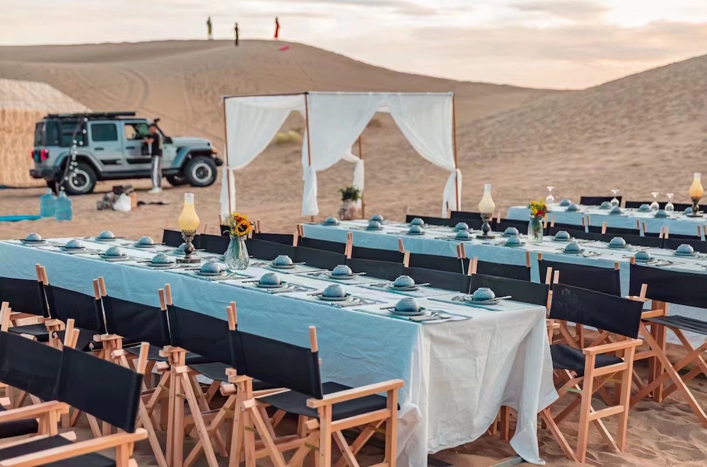 ※四輪駆動車砂漠ドライブ、サンドバギー、砂滑り、砂漠夕日、花火、砂漠ディナーなど砂漠キャンプをお楽しみください。