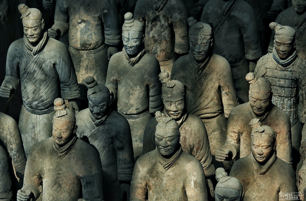 地下に埋められていた推定8000体と言われる実物大の兵士、馬、戦車の陶俑、始皇帝の絶大な権力を象徴する遺産