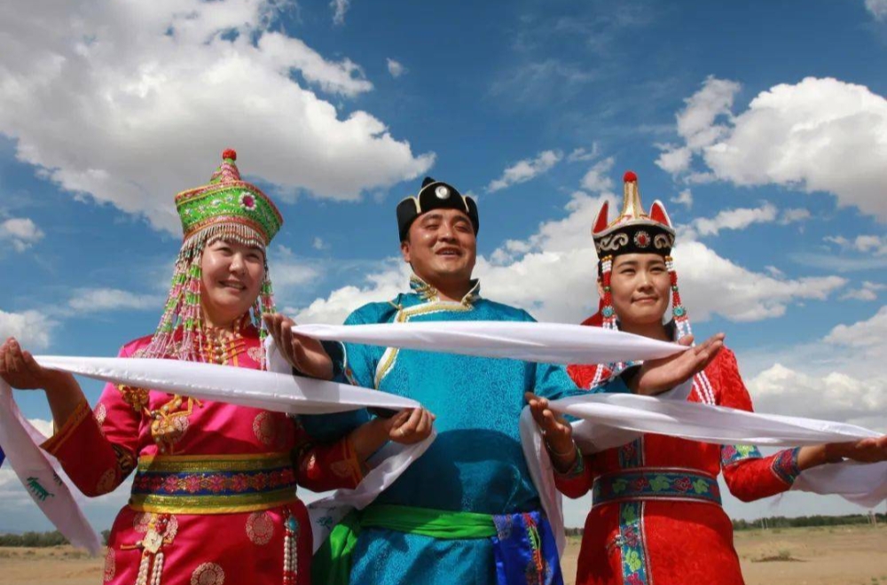 シラムレン草原到着後、草原歓迎式「下馬酒」を体験