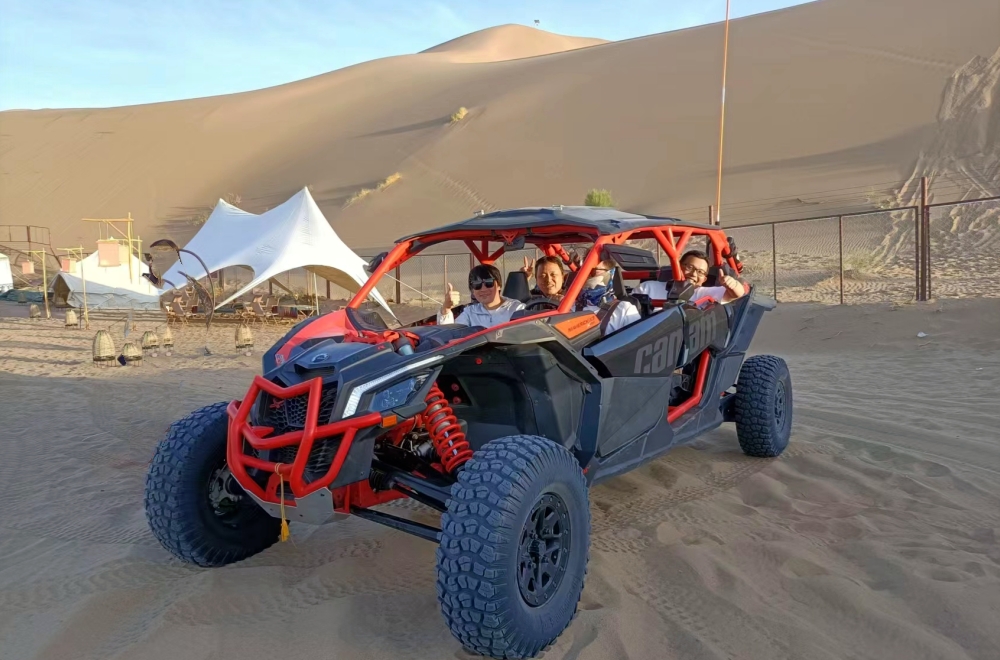 ※四輪駆動車砂漠ドライブ、サンドバギー、砂滑り、砂漠夕日、花火、砂漠ディナーなど砂漠キャンプをお楽しみください。