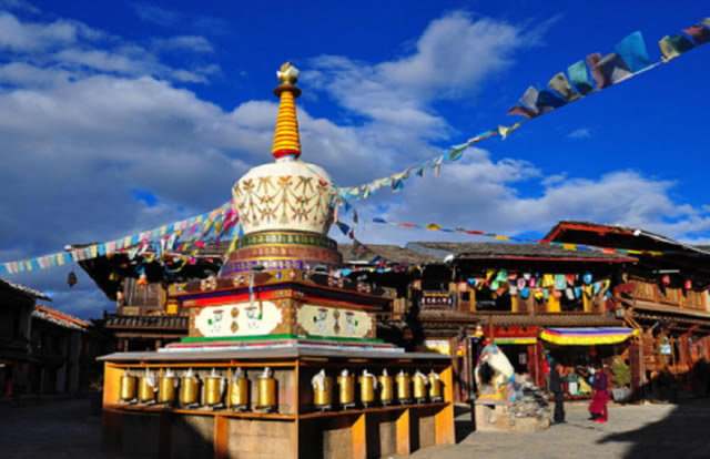 ホテルにて朝食後、専用車にて玉龍雪山へ。麗江一帯に住むナシ族の宗教であるトンパ教の聖地、北半球最南端に位置する氷河と万年雪を有し、最高峰は標高5,546m、さらに13の峰が連なる雄大な山脈、前人未到の処女峰「玉龍雪山」(往復とも氷河公園ロープウエイを利用して富士山超えの氷河展望台で大迫力の氷河パノラマを見学!)、谷の間には、玉龍雪山の雪解け水からできた河、素晴らしい青の色合いの湖水はとても澄んでいて、湖底を見ることができた絵のように美しい「藍月谷・白水河」、昼食後、専用車にて小説『失われた地平線』に登場する理想郷(ユートピア)のシャングリラ(香格里拉)へ。途中、世界でも有数の深い峡谷、金沙江(長江)の激流に圧倒される広大な世界自然遺産「雲南保護地域の三江併流群」の「虎跳峡」トレッキング、色々な高原植物が咲き乱れて綺麗な草原「小中甸草原」を車窓観光しながらシャングリラに向け、着後、中国で最も完全に保存されたチベット族最大の民家群、茶馬古道の重要な中継点、大きなマニ車が目印の亀山公園を中心に広がるショッピングエリア「独克宗古城(ドクゾンコジョウ)」を訪れます。